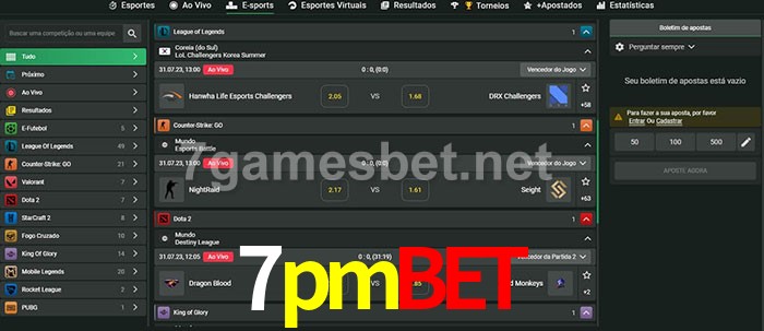 O 7pmbet oferece uma grande seleção de opções de apostas em e-sports com probabilidades competitivas